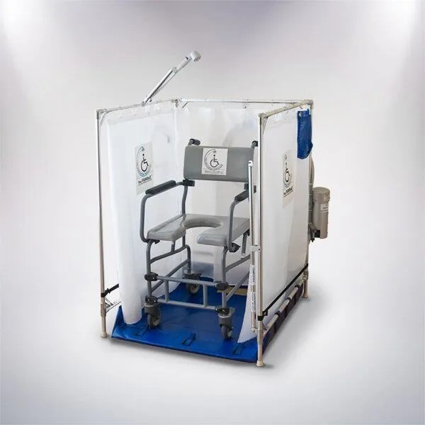 Shower at Home is a fully assembled, portable shower system designed for people who use a wheelchair or cannot safely access a standard bathroom.